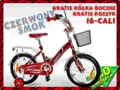 Stan: Nowy Rozmiar koła w calach: 16" Wiek dziecka: 5 lat + Rama: Stalowa Wyposażenie: Bagażnik, Kółka boczne, Koszyk, Lusterko, Błotniki, Osłona łańcucha, Dzwonek Hamulec: Przód, Tył
