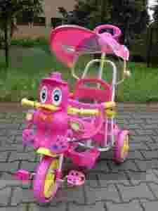 ROWERKI POSIADAJĄ-Regulowany drążek połączony z kierownicą, wspomagający pchanie i kierowanie- koła wykonane z miękkiej pianki - daszek przeciw słoneczny- pojemny kosz tylni na zabawki- regulowaną poręcz zabezpieczającą dziecko przed upadkiem- stabilną i trwałą stalową ramę-rowerek w łatwy sposób można przemontować na bujawkę- dla początkujących podstawkę pod stopy- regulowaną odległość siedzenia od pedał-przycisk na głowie kaczki umożliwiający ruchy skrzydeł- na głowie 3 przyciski dźwiękowe (melodyjki)