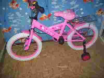 Stan: Nowy Rozmiar koła w calach: 16" Wiek dziecka: 3 lata + Rama: Stalowa Kolor: Różowy, Wyposażenie: Bagażnik, Kółka boczne, Lusterko, Błotniki, Osłona łańcucha, Dzwonek,