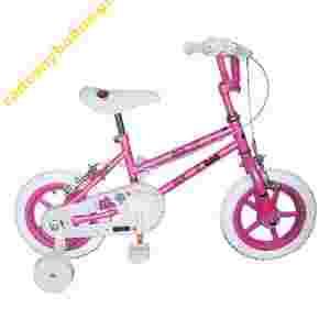 Stan: Nowy Rozmiar koła w calach: 12" Wiek dziecka: 2 lata + Rama: Stalowa Kolor: Biały, Różowy, Wyposażenie: Kółka boczne, Osłona łańcucha,