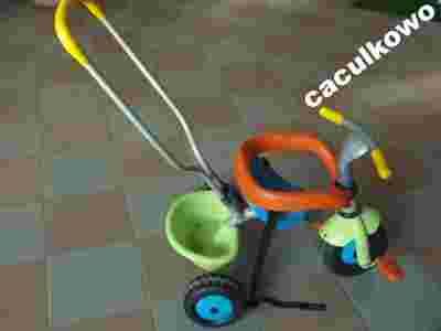 Rowerek na trzech kolach z pchaczem, pasami bezpieczenstwa i malym bagaznikiem na podreczne zabawki. posiada tez zabezpieczenia - nakladke chroniącą dziecko przed wypadnieciem - zdejmowaną