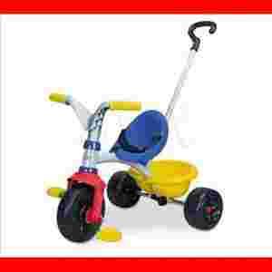 Stabilny, metalowy, trzykołowy rowerek udekorowany obrazkami z bajki, z metalową, stabilną ramą, z regulowanym, ergonomicznym siedziskiem (3 pozycje), z pasami bezpieczeństwa (odczepiane),przednie koło z funkcją wolnego koła, blokada kierownicy, z regulowanym uchwytem dla rodzica (możliwość demontażu), z pojemnikiem - wywrotką na drobiazgi.