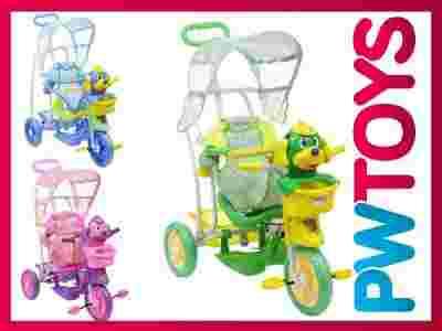 Solidny rowerek trzykołowy idealny na spacery z maluchem. Jest uniwersalny - można go dopasować do różnych etapów rozwoju dziecka! Rodzice mogą sterować rowerkiem za pomocą rączki, rowerek stylizowany na pieska - szczeniaczka!