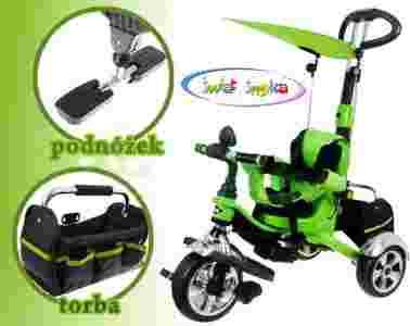 - z tyłu regulowany drążek połączony z kierownicą, którym można w każdej chwili skorygować manewry dziecka,