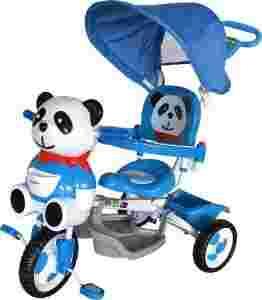 Rowerek trójkołowy z rączką Panda NIEBIESKI
