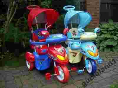 Posiada wszystkie potrzebne funkcje. Sterowany z *rączki* pozwala na kontrolowanie toru jazdy dziecka. Duże kółka to komfort dla Twojego dziecka.
