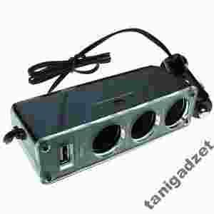 Fabrycznie nowy, wysokiej jakości rozdzielacz gniazda zapalniczki samochodowej z 1 na 3 + gniazdo USB 5V.