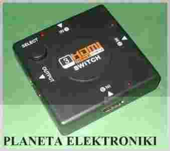 Rozdzielacz HDMI Switch 3 Porty Rozgałęźnik FULLHD - pozwoli na podłączenie 3 urządzeń, np: laptopa,komputera PC,konsol: xBox360; PS3, dekodera cyfrowego, odtwarzacza DVD itp. do jednego odbiornika np. monitora, telewizora, LCD lub LED.