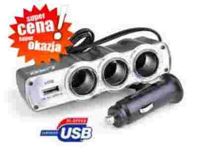 ROZDZIELACZ ROZGAŁĘŹNIK 3 ZAPALNICZKI + USB