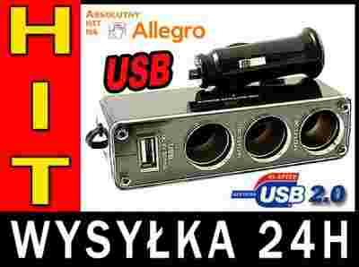 Rozgałęziacz pozwala na podłączenie czterech urządzeń elektronicznych w jedno gniazdo zapalniczki 12V. Dodatkowo posiada wejście na USB 5V. Szczególnie przydatny gadżet dla osób które korzystają z kilku urządzeń elektronicznych np: telefonu, laptopa, PDA, odtwarzacza MP3, MP4, zasilacze do laptopów, TV, DVD ładowarki do telefonów itp. Antyradar ,GPS i wiele innych urządzeń.
