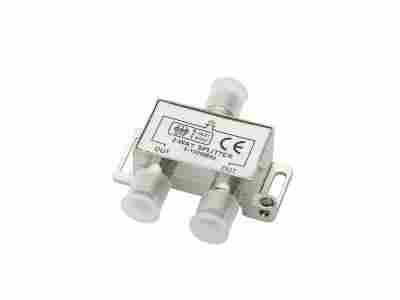 rozgałęźnik indukcyjny w solidnej metalowej obudowie ze stopów aluminium; tłumienie we/wy dla VHF- 3,2dB; tłumienie we/wy dla UHF- 3,7dB; dobre ekranowanie i solidne gniazda typu F; pracuje w paśmie częstotliwości od 5 do 1000MHz; niska cena w stosunku do posiadanych parametrów; dwukrotny;