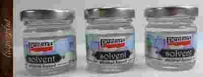 Rozpuszczalnik alkoholowy służy do rozpuszczania i rozcieńczania farb do szkła Pentart i do błyszczącego lakieru Pentart na bazie rozpuszczalnika oraz do mycia używanych narzędzi.