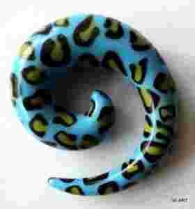 Przedmiotem sprzedaży jest rozpychacz spirala 10mm NIEBIESKA PANTERKA W ŻÓŁTE ŁATKI. Spirala jest wykonana z akrylu. Grubość spirali -10mm, wysokość - 36mm, szerokość - 32mm.