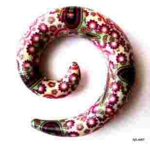 Przedmiotem sprzedaży jest rozpychacz spirala grubości 12mm motyw beżowy we wzory. Spirala jest wykonana z akrylu. Grubość spirali 12mm, wysokość 54mm, szerokość 44,5mm.