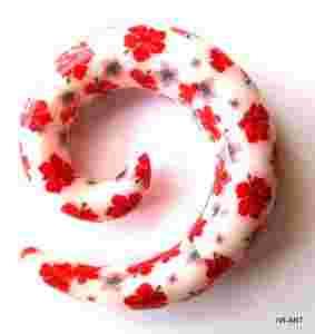Przedmiotem sprzedaży jest rozpychacz spirala grubości 12mm motyw biały w czerwone kwiaty. Spirala jest wykonana z akrylu. Grubość spirali 12mm, wysokość 54mm, szerokość 44,5mm.