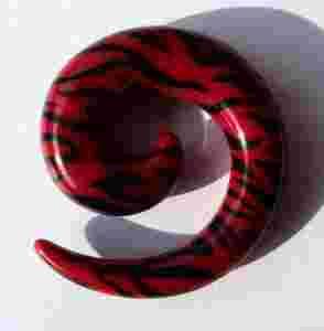 Przedmiotem sprzedaży jest rozpychacz spirala grubości 8mm czerwona zebra w czarne paski. Spirala jest wykonana z akrylu. Grubość spirali 8mm, wysokość 32mm, szerokość 28mm.