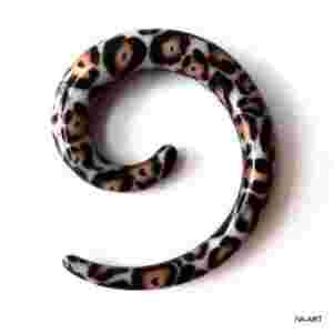 Przedmiotem sprzedaży jest rozpychacz spirala grubości 6mm, wykonana z akrylu, wzór JASNO-BRĄZOWA PANTERKA. Grubość spirali 6mm, wysokość 35mm, szerokość 29mm.