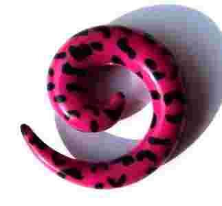 Przedmiotem sprzedaży jest rozpychacz spirala grubości 8mm różowa w czarne łatki. Spirala jest wykonana z akrylu. Grubość spirali 8mm, wysokość 32mm, szerokość 28mm.
