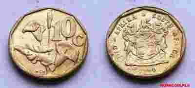 RPA - AFRYKA POŁUDNIOWA 10 CENTS 1990 PODWÓJNA LEG