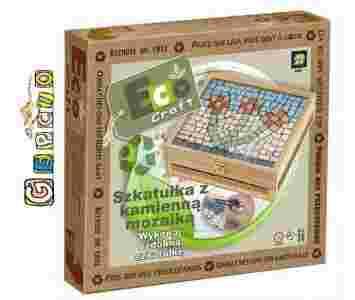 Doskonała zabawa dla kreatywnych dziewczynek. Stwórz ozdobne pudełeczko na biżuterię - drewnianą szkatułkę ozdób za pomocą kamiennej mozaiki. Zawartość opakowania: drewniana szkatułka, proszek gipsowy, klej, gąbka, szablon, penseta, elementy kamiennej mozaiki, instrukcja. Wymiary pudełka 28x26x6cm