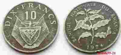 RUANDA RWANDA 10 FRANCS 1974 DUŻA RZADKA!