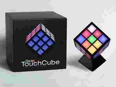 Kostka Rubik's TouchCube to pierwsza na świecie w pełni elektroniczna, dająca się normalnie rozwiązać Kostka Rubika! Przejedź po prostu palcem wzdłuż kolorowo podświetlonych kwadratów by bez wysiłku przesunąć światła, naśladując każdy ruch oryginalnej Kostki. Jeżeli kiedykolwiek zdarzy Ci się utknąć, Kostka TouchCube może udzielić Ci wskazówek, albo nawet rozwiązać zadanie na Twoich oczach robiąc to krok po kroku. Każda z sześciu ścianek zawiera w sobie szczyt technologii - niezwykle proste w użyciu sensory dotykowe. Przejedź palcem po kwadratach a światła podążą za tobą symulując obrót. Po prostu przesuń światła w pionie, poziomie lub obróć całą ściankę jednym ruchem palca. Kostka TouchCube naśladuje każdy ruch oryginalnej Kostki! Silny procesor znajdujący się wewnątrz TouchCube zawsze zna dokładną liczbę ruchów niezbędnych do osiągnięcia rozwiązania. Ta genialna Kostka może każdego nauczyć rozwiązywać najlepszą łamigłówkę na świecie! Wybieraj pomiędzy nowoczesnymi efektami dźwiękowymi, a dźwiękiem oryginalnej Kostki Rubika. Podziwiaj jak TouchCube sama się miesza i sama się rozwiązuje w trakcie ładowania stojąc na podstawce i tworząc w ten sposób arcyciekawe świetlne przedstawienie.