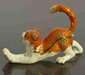 Rudy kotek - urzekająca szkatułka (metal), nawiązująca do dzieł słynnego jubilera Petera Carla Faberge (1[zasłonięte]846-19).