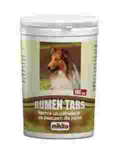 Rumen Tabs to mieszanka trzech składników potrzebnych do prawidłowego funkcjonowania przewodu pokarmowego psa. Żwacz - naturalne źródło bakterii, pierwotniaków i drobnoustrojów potrzebnych do prawidłowej fizjologii przewodu pokarmowego. Stymuluje perystaltykę jelit, wzmaga apetyt, uzupełnia niedobory flory bakteryjnej, zapobiega wyjadaniu „nieczystości”, odchodów zwierzęcych, padliny. Drożdże piwne - naturalny probiotyk, źródło witamin z grupy B, selenu, biotyny oraz makro- i mikroelementów, tonizują przewód pokarmowy, wątrobę, trzustkę, wzmagają łaknienie. Witamina C - naturalny przeciwutleniacz - reduktor działa odtruwająco i stymulująco na organizm.