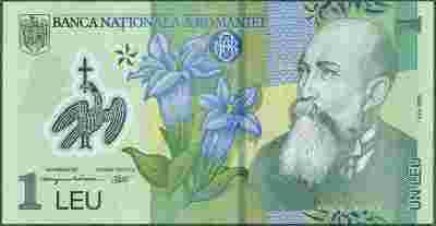 Rumunia - 1 leu 2013 P117d *UNC * kwiaty * polimer