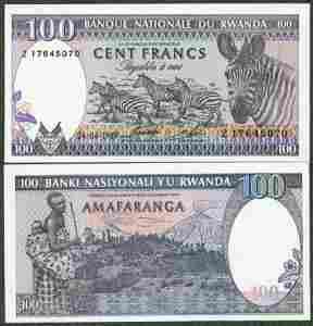 Rwanda - 100 franków 1989 P19 śliczne zebry UNC