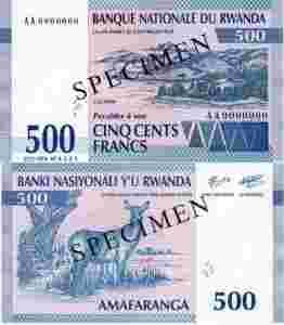 Rwanda 500 Francs 1994 P-23s Specimen stan UNC