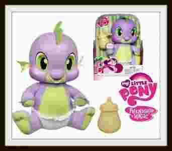 Mamy przyjemność przedstawić Państwu sympatycznego, fioletowego Smoka- Spika. Jest wiernym towarzyszem Twilight. Jego ulubionym pokarmem są kamienie szlachetne, zwłaszcza te niebieskie. Teraz Spike może stać się najlepszym towarzyszem zabaw Twojego Dziecka.