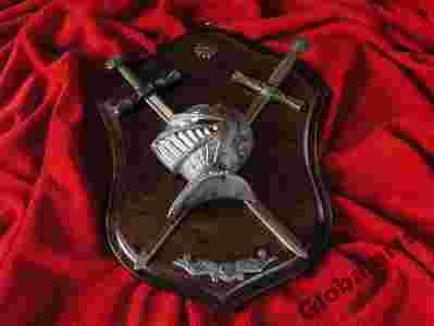 RYCERSKA PANOPLIA Z DWOMA MIECZAMI I HEŁMEM