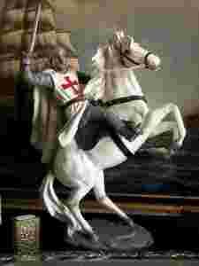 RYCERZ KRZYŻOWIEC NA KONIU Z MIECZEM TARCZĄ wys 33