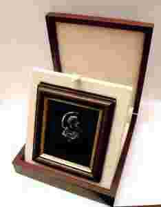OBRAZEK SREBRNY W DREWNIANYM PUDEŁKU Wyrób autorski wykonany ręcznie w naszej pracowni jubilerskiej.