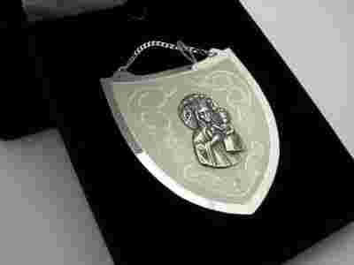 Ryngraf z wizerunkiem Matki Boskiej Częstochowskiej.