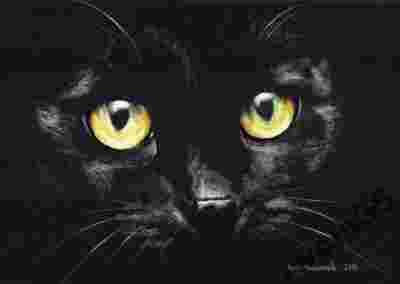 Rysunek obraz - czarny kot - kotek - A4