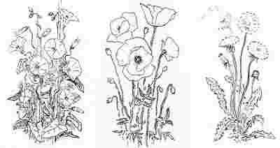 Rysunki piórkiem - kwiaty polne