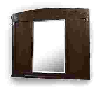 Oprawę lustra, o łukowatym wykroju w górnej części, wykonano z drewna fornirowanego orzechem.