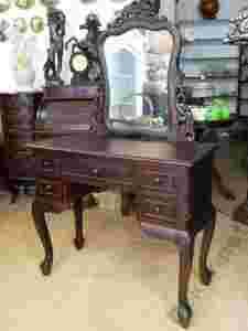 Rzeźbiona TOALETKA Z LUSTREM na giętych nogach