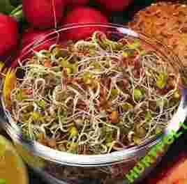 Nasiona należy moczyć przez 6-12h, a następnie przenieść do kiełkownicy i płukać 2-3 razy dziennie. Po 3-6 dniach są gotowe do spożycia.