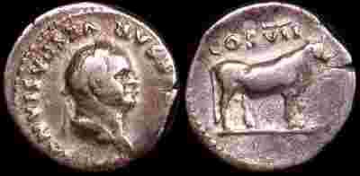 Rzym, Wespazjan 69-79ne, Denar 76ne, Byk, Ric 841