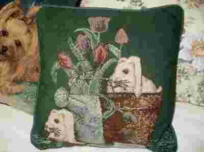 Słodka poduszka gobelinowa z krolikami