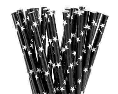 Słomki papierowe, czarne w gwiazdki, 25szt