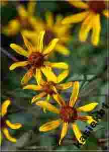 Charakteryzuje się żółtymi kwiatami z pomarańczowymi środkami