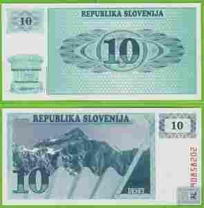 SŁOWENIA 10 Tolarów 1990 P4a AL UNC Góry