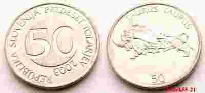 SŁOWENIA 50 TOLARJEV 2003 ZWIERZĘTA BYK ŁADNA