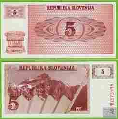 SŁOWENIA 5 Tolarów 1990 P3a AD UNC Góry
