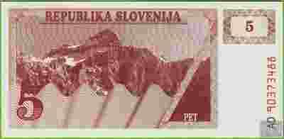 SŁOWENIA 5 Tolarów 1990 P3a AD UNC Góry
