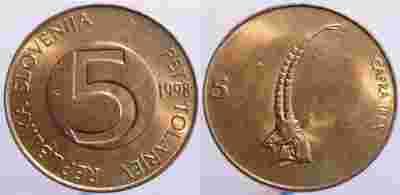 SŁOWENIA - 5 TOLARJEV 1998 r KOZIOŁ moneta nr 12
